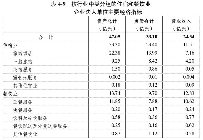 2023年末,住宿和餐飲業(yè)企業(yè)法人單位資產(chǎn)總計(jì)47.05億元,比2018年末下降6.5%;負(fù)債合計(jì)33.10億元,比2018年末下降21.0%。