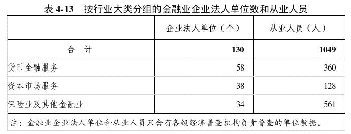 2023年末,全市共有金融業(yè)企業(yè)法人單位130個(gè),從業(yè)人員1049人,分別比2018年末下降12.8%和64.2%(詳見(jiàn)表4-13)。