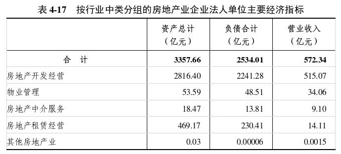 2023年末,全市房地產(chǎn)業(yè)企業(yè)法人單位資產(chǎn)總計(jì)3357.66 億元,比2018年末增長(zhǎng)33.2%。其中,房地產(chǎn)開(kāi)發(fā)經(jīng)營(yíng)企業(yè)2816.40億元,物業(yè)管理企業(yè)53.59 億元,房地產(chǎn)中介服務(wù)企業(yè)18.47億元,分別比2018年末增長(zhǎng)19.0%、171.5%和244.6%。房地產(chǎn)業(yè)企業(yè)法人單位負(fù)債合計(jì)2534.01億元,比2018年末增長(zhǎng)17.7%。