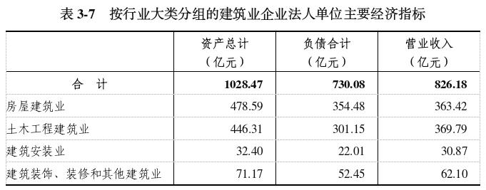 ????2023年,建筑業(yè)企業(yè)法人單位全年實現(xiàn)營業(yè)收入826.18億元,比2018年增長64.7%(詳見表3-7)。